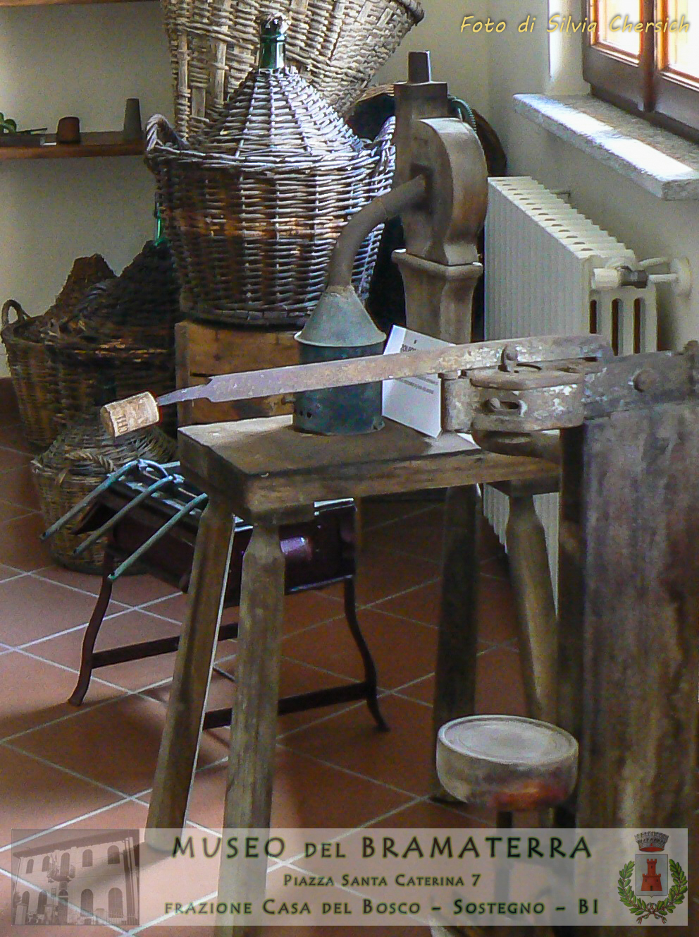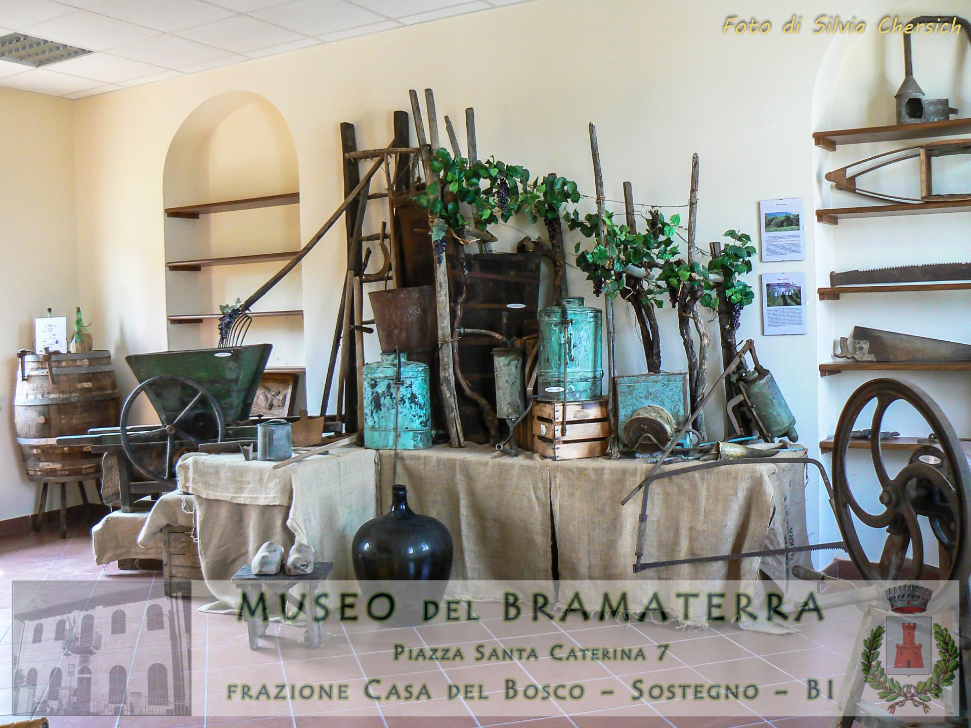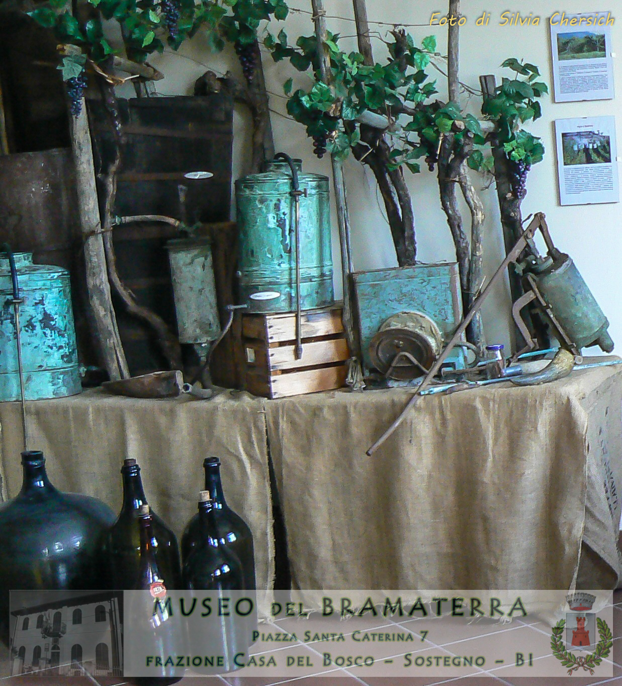 In mostra gli antichi strumenti vitivinicoli: il torchio, pigiatrici, tini, brente per la raccolta dell’uva, botti grandi e piccole, barrique, damigiane, bottiglioni, bottiglie, setacci, imbuti, imbottigliatrice, fermentino, solforatrici, pompe da verderame a spalla, pompe da travaso e attrezzi di cultura contadina. La documentazione riguarda anche i documenti storici che riguardano la documentazione dell’iter per l’ottenimento del DOC Bramaterra, foto d’epoca e panelli esplicativi relativi al ciclo della vite, le malattie, le caratteristiche organolettiche del vino.